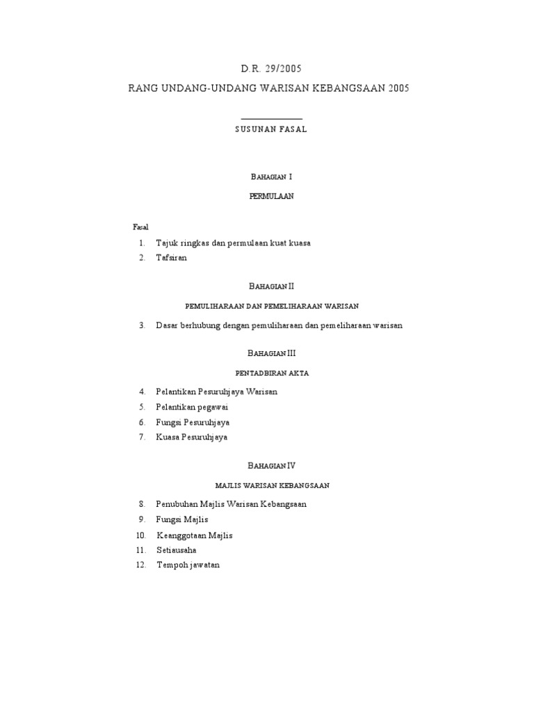 Download warisan kita download document. Melalui akta ini, beberapa bidang kesenian didaftarkan sebagai warisan negara. Kajian ini merumuskan bahawa akta warisan kebangsaan, 2005 dapat memenuhi kehendak pembangunan warisan dan budaya negara. Akta persatuan institut wanita kebangsaan bagi malaysia perbadanan 1958. Akta warisan kebangsaan 2005 (akta 645):