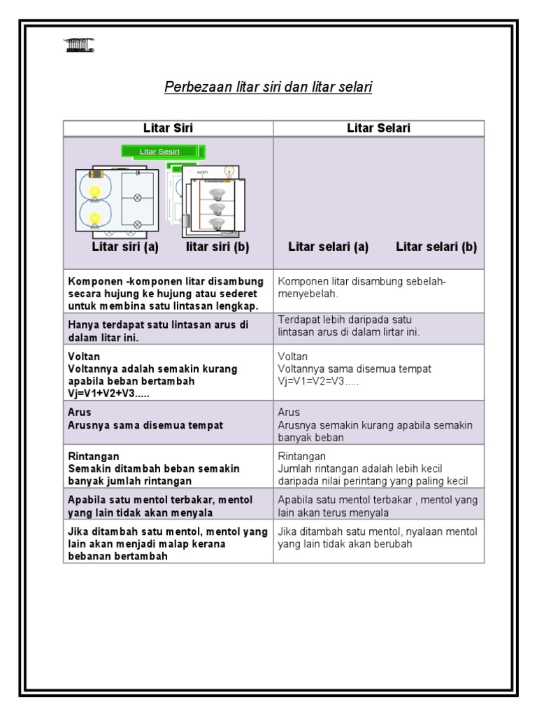 Pengenalan ini akan membantu anda mengetahui apa persamaan dan perbezaannya. Terdapat 2 jenis litar iaitu litar siri litar selari lukisan yang sering digunakan dalam lukisan litar… mentol kedua tidak akan menyala kerana litar siri hanya mengalirkan arus 1 arah sahaja. Jumlah kuasa yang dibekalkan adalah jumlah kuasa yang digunakan dalam setiap komponen litar seperti: Litar sesiri dan selari docx pdf document. Pada akhir video ini, anda akan belajar tentang: