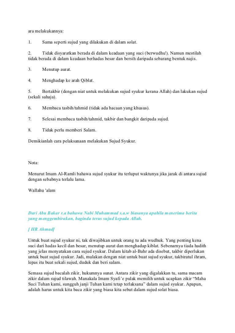 Bentuk sujud seperti sujud mendahului takbir dan membaca pembacaan syukur. Sajada wajhi lillazi kholaqahu washowwarahu. Görünümler 1,7 b7 aylar önce. Sujud syukur dapat dilakukan jika seorang muslim dalam keadaan suci, menutupi aurat dan menghadap kiblat. Mensyukuri nikmat yang allah berikan dapat.